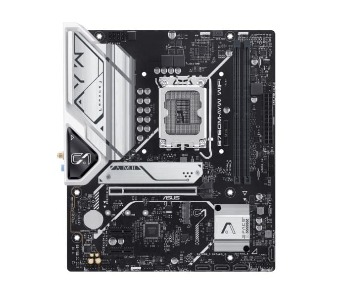ASUS B760M-AYW WIFI Intel LGA1700 mATX Motherboard, DDR5 96GB 8000(OC), PCIe 4.0, 2xM.2, 2.5GbE, WiFi 6, HDMI 4K60