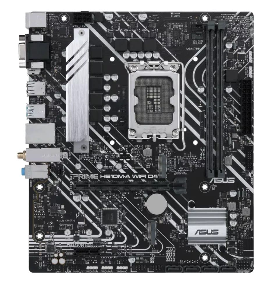 ASUS H610M-A WIFI D4-CSM PRIME Intel LGA 1700 mATX Motherboard, DDR4 64GB, PCIe4.0, M.2, 1Gb Ethernet, HDMI, D-SUB, USB3.2 Gen2, SATA 6Gbps,