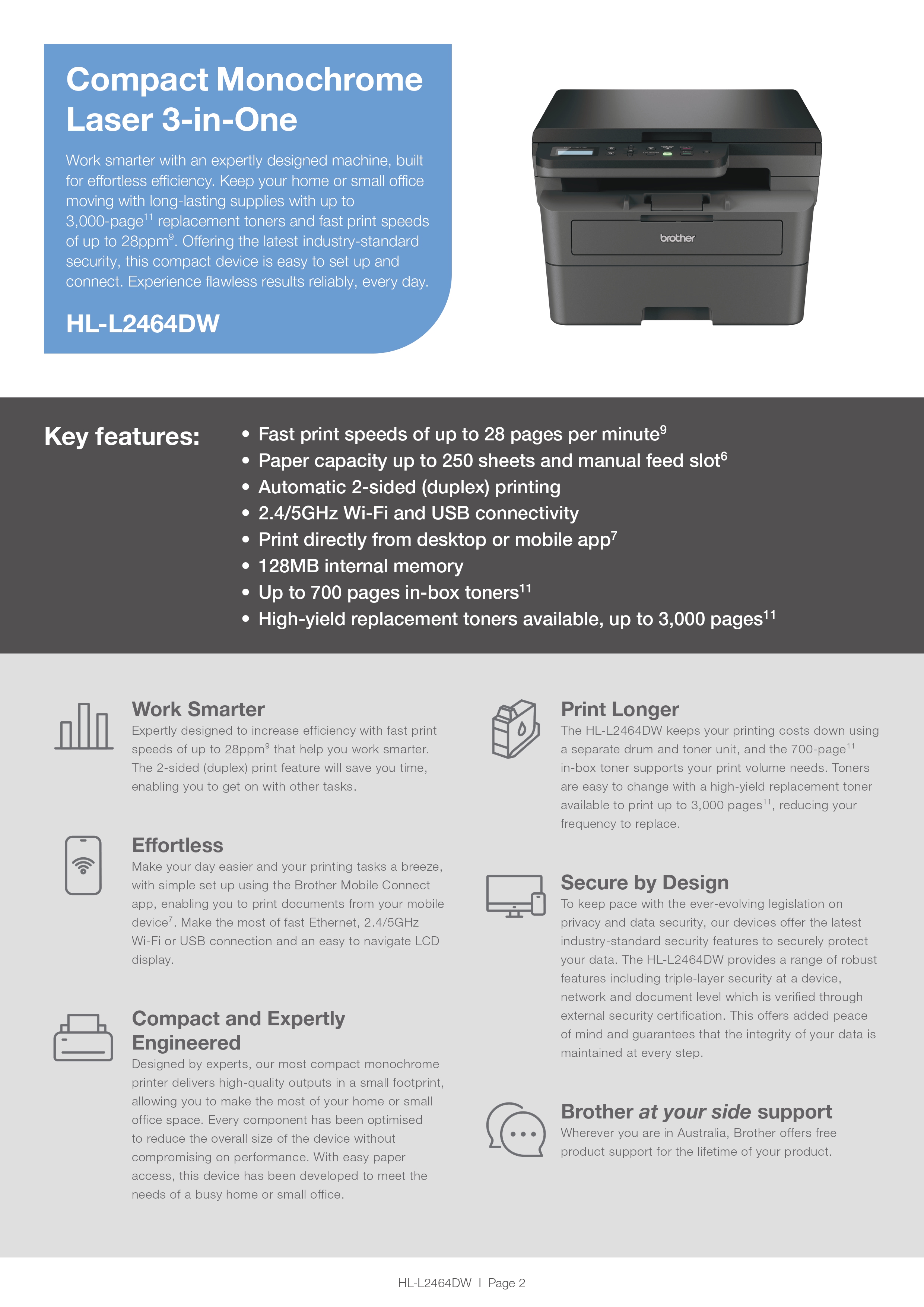 *NEW*Compact Mono Laser Multi-Function Centre – Print/Scan/Copy with Print speeds of Up to 28 ppm, 2-Sided Printing, Wireless networking