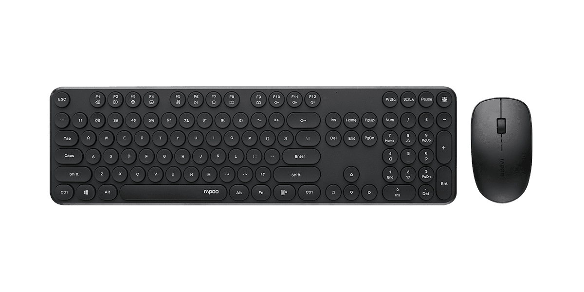 RAPOO Wireless Optical Mouse Keyboard Black – 2.4G Connection, 10M Range, Spill-Resistant, Retro Style Round Key Cap, 1000DPI – Black