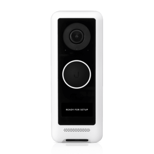 Description:WiFi-connected doorbell with an integrated night vision camera and porch light. Capture video and communicate with visitors at your front door with the UniFi Protect G4 2MP Doorbell from Ubiquiti Networks. This Wi-Fi device uses a CMOS sensor to capture 1600 x 1200 resolution video at 30 fps. It features a fixed lens that delivers a 155° diagonal field of view, a PIR sensor for motion detection, and a built-in speaker and microphone for two-way audio communication.
